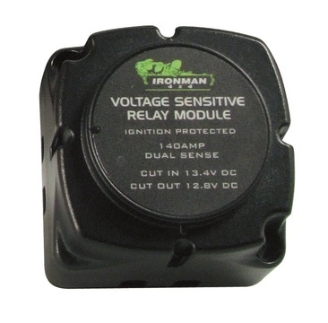 The Ironman 4x4 140 Amp Dual Battery Kit allows two batteries to be charged at the same time. When the engine is started and the main battery reaches 13.4 volts, the Ironman module engages, allowing the two batteries to be charged simultaneously.