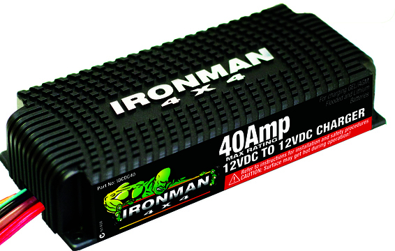 Ironman 4x4's DC to DC 40amp boost, 3 stage battery charger. With the new generation of vehicles it is important to ensure that auxilary battery charging is managed in a way to maximize the charge. The Ironman 4x4 DC to DC 40 amps chargers uses the latest generation technology producing more power in a much smaller compact unit. The DC to DC charger is able to cope with under bonnet heat, vibration and has a unique heat sink to maximize cooling and maximize efficiencies. This DC to DC charger is encapsulated in a weatherproof polymer.