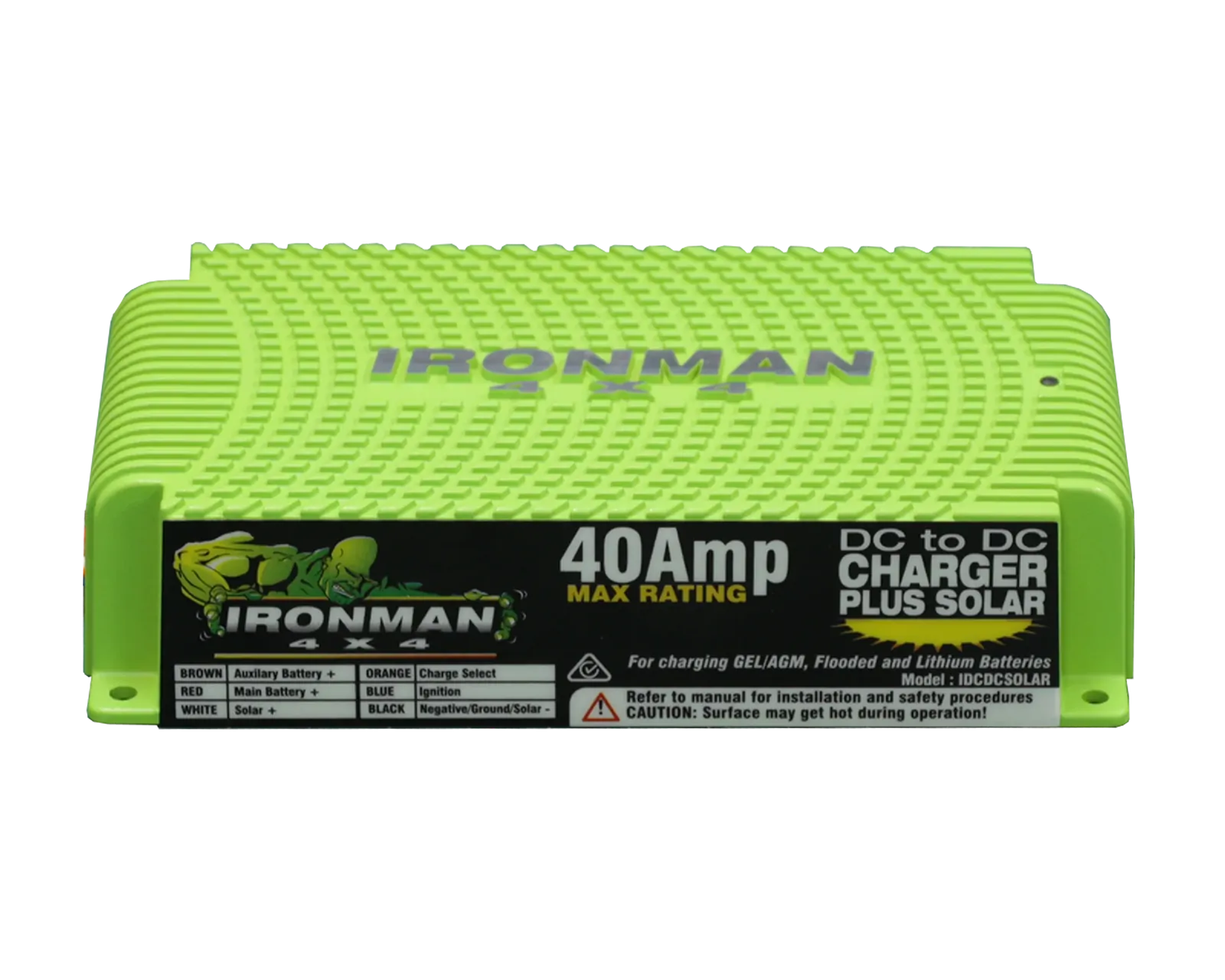 A versatile 40 A DC-to-DC dual battery charger with built-in MPPT solar input regulation. It automatically switches between alternator charging when driving and solar charging when stationary, optimising auxiliary battery charge from both sources. The unit is fully polymer-encapsulated for waterproofing and pre-wired for easy installation.