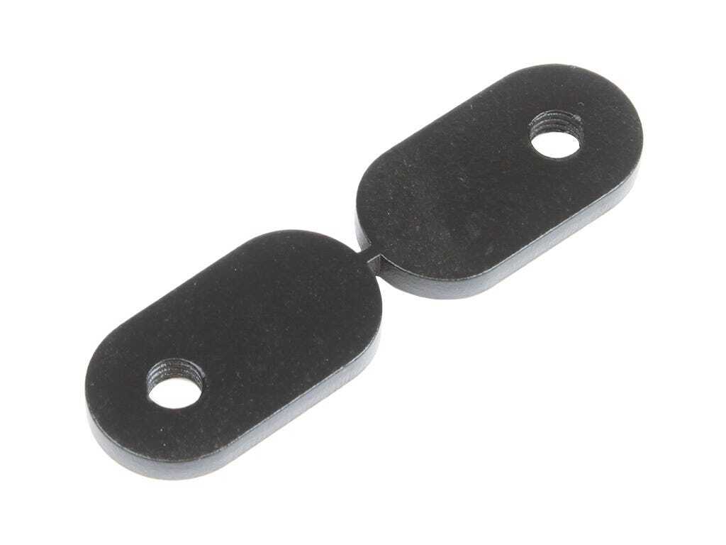- These black powder coated plates slide into the tent extrusion and bolt onto the latch bracket and self-aligning bushes.